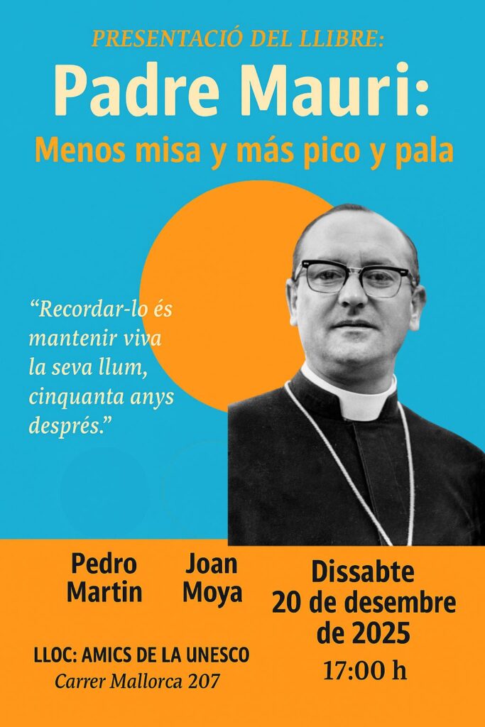 El que molts caminants no saben és que Bones Hores va ser, durant dècades, el centre d’un projecte social, educatiu i humà d’una importància extraordinària. I és precisament aquesta història la que expliquem al llibre Padre Mauri: “Menos misa y más pico y pala”, que presentarem el pròxim 20 de desembre.