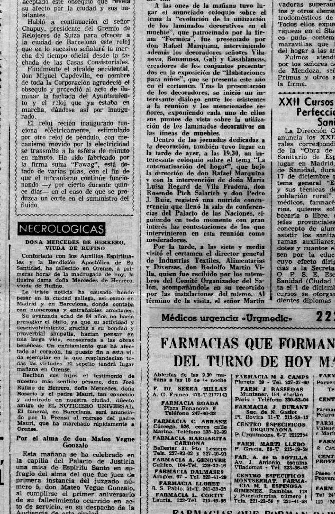 És en aquest context que apareix una breu necrològica publicada al Noticiero Universal el 15 de novembre de 1966, on s’informa de la mort de Doña Mercedes de Herrero a Ourense i del desplaçament dels seus fills, entre ells el pare Mauri, per assistir a l’enterrament. Una nota breu, sense cap voluntat explicativa, però suficient per aclarir un punt que havia quedat en suspens durant anys.