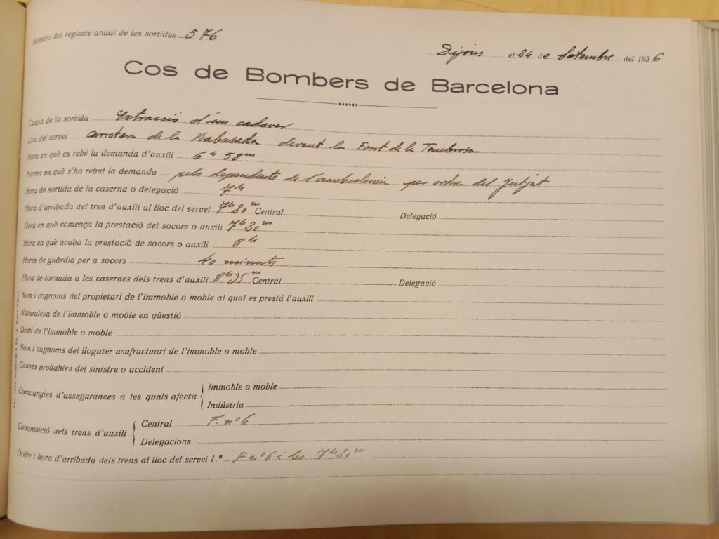 En aquell context, el Cos de Bombers continuava intervenint. Incendis, esfondraments, auxili a ferits, extraccions de cossos. Els llibres de servei no descrivien el clima polític. Només consignaven hora i lloc.